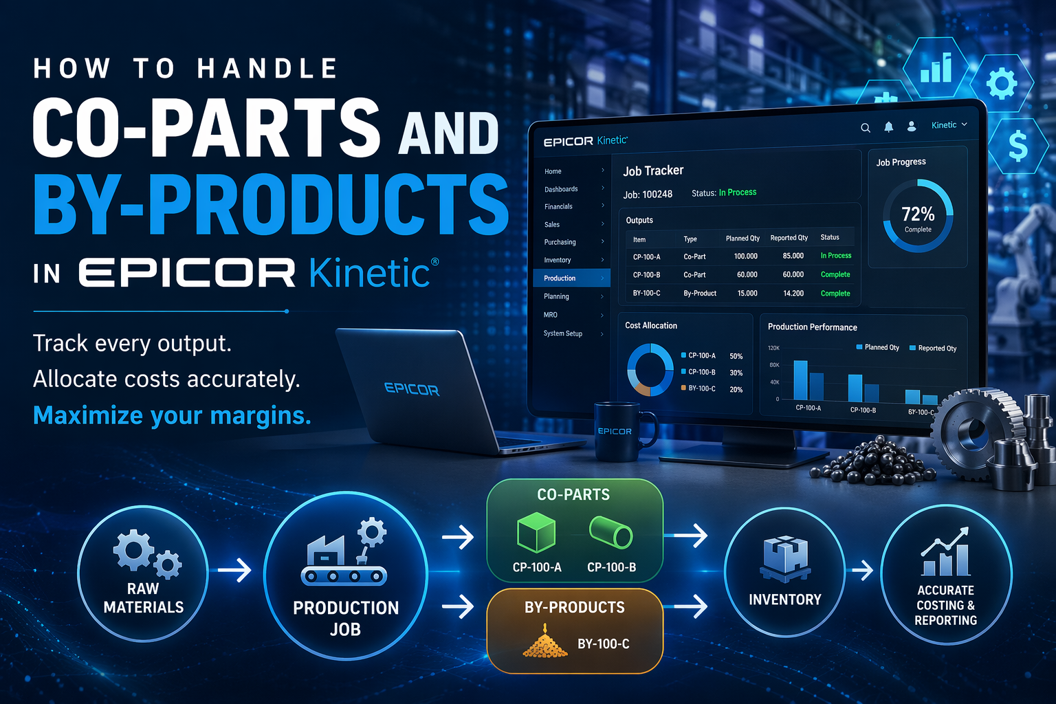 Proper handling of co-parts and by-products in Epicor Kinetic improves cost accuracy, inventory control, and operational efficiency.